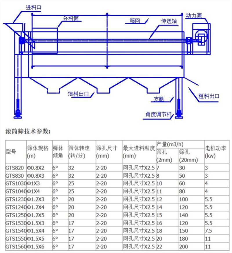 3. 小于冲孔板孔径的物料经过筛孔落入下方的搜集设备,大于孔径的物料则从滚筒结尾排出。